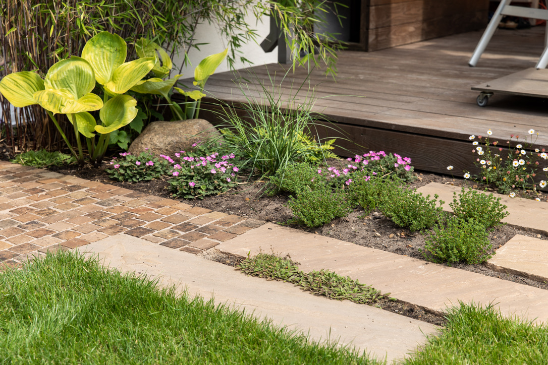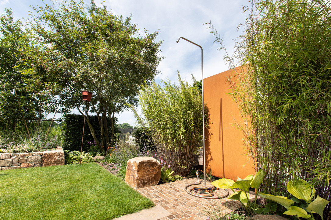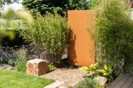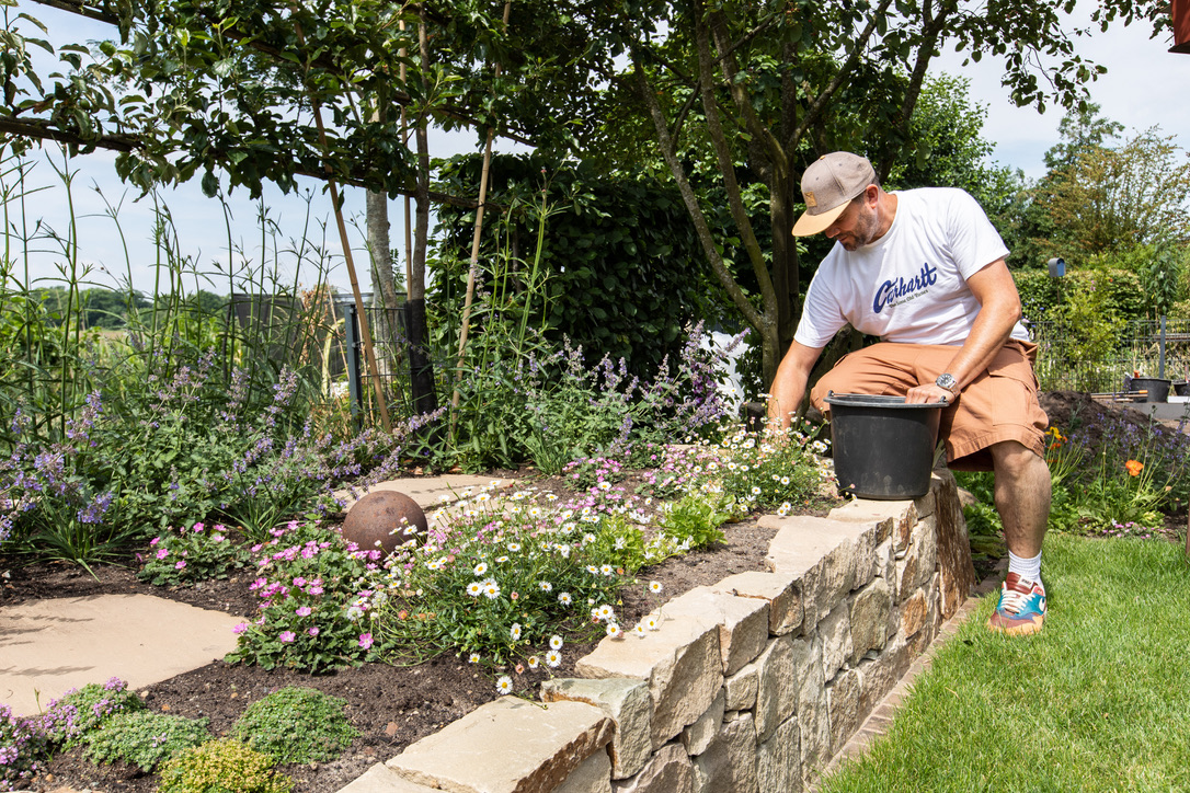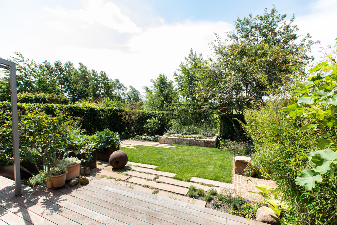 Die Familie wünschte sich einen natürlich-modernen, abwechslungsreichen Garten mit einer üppigen und vielfältigen Bepflanzung. Zudem wird hier gerne und sehr gut gekocht und somit bestand eine meiner Aufgaben darin, Raum für Kräuter, Gemüse und Obst zu schaffen. Privatsphäre sollte einerseits weiterhin gegeben sein, andererseits sollte eine Möglichkeit geschaffen werden, den Blick in die, hinter dem Grundstück liegenden, Wiesen freizugeben.