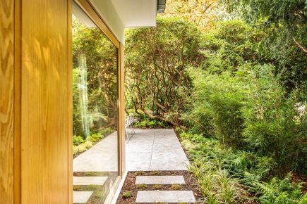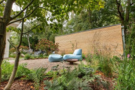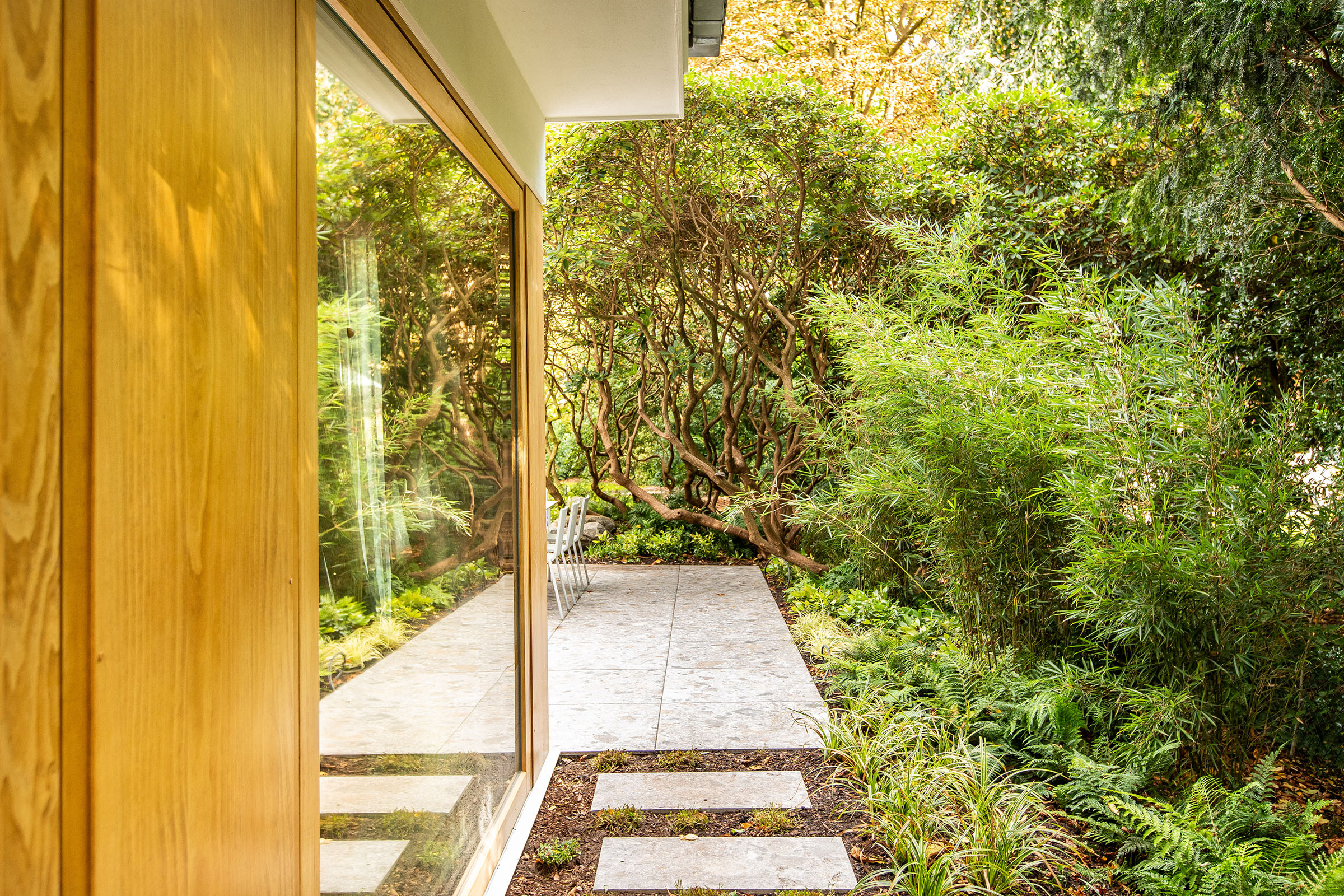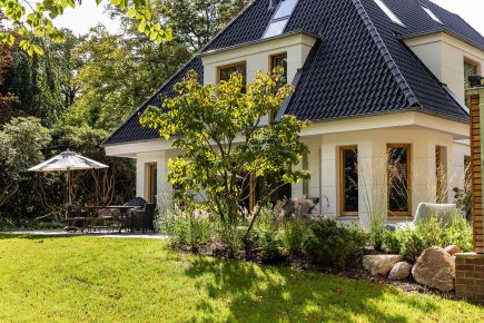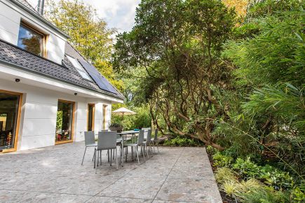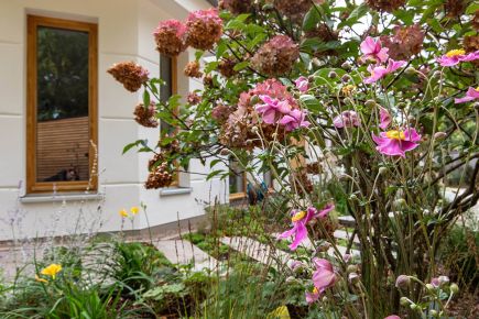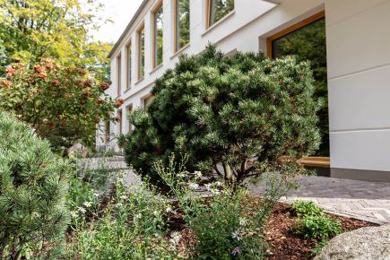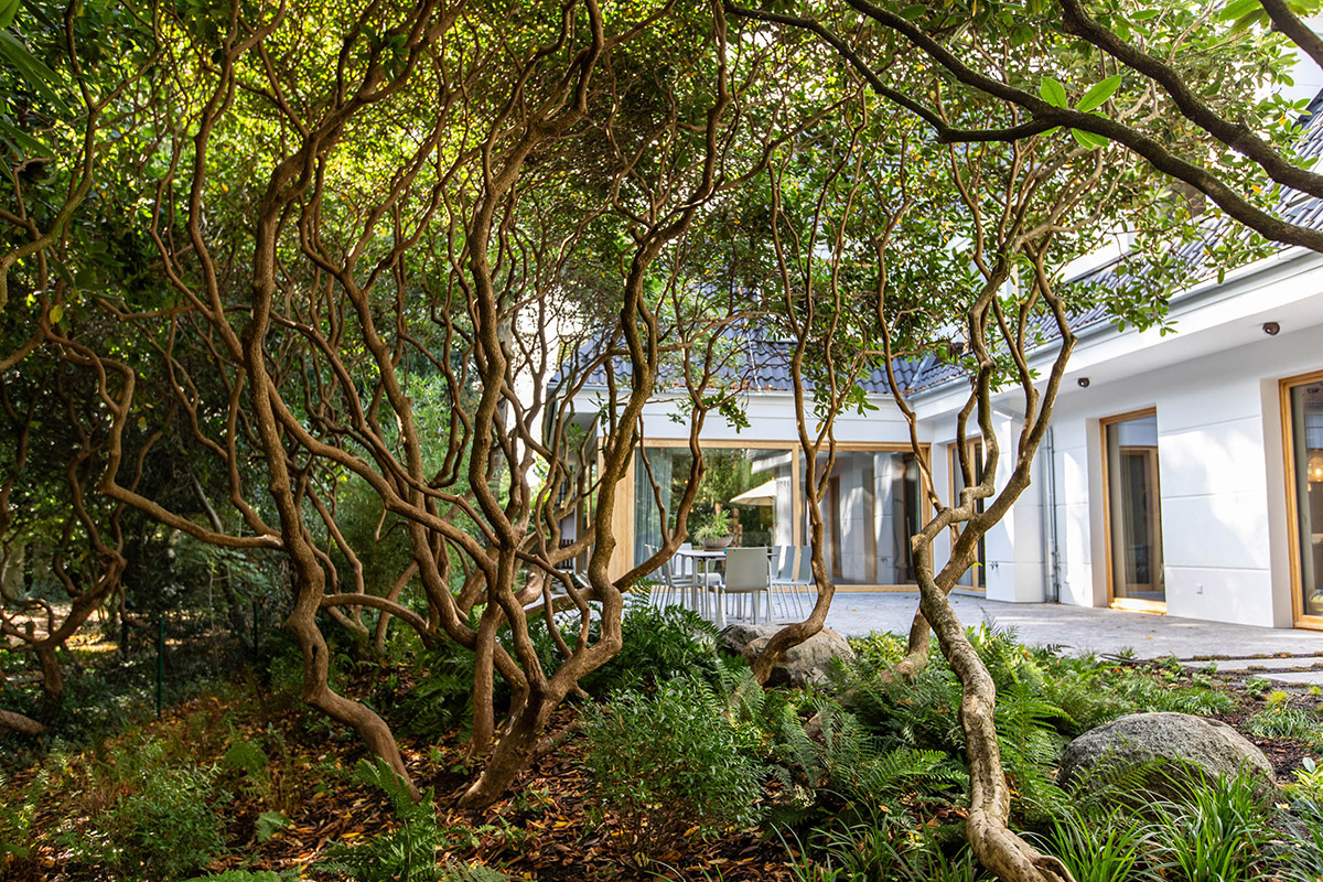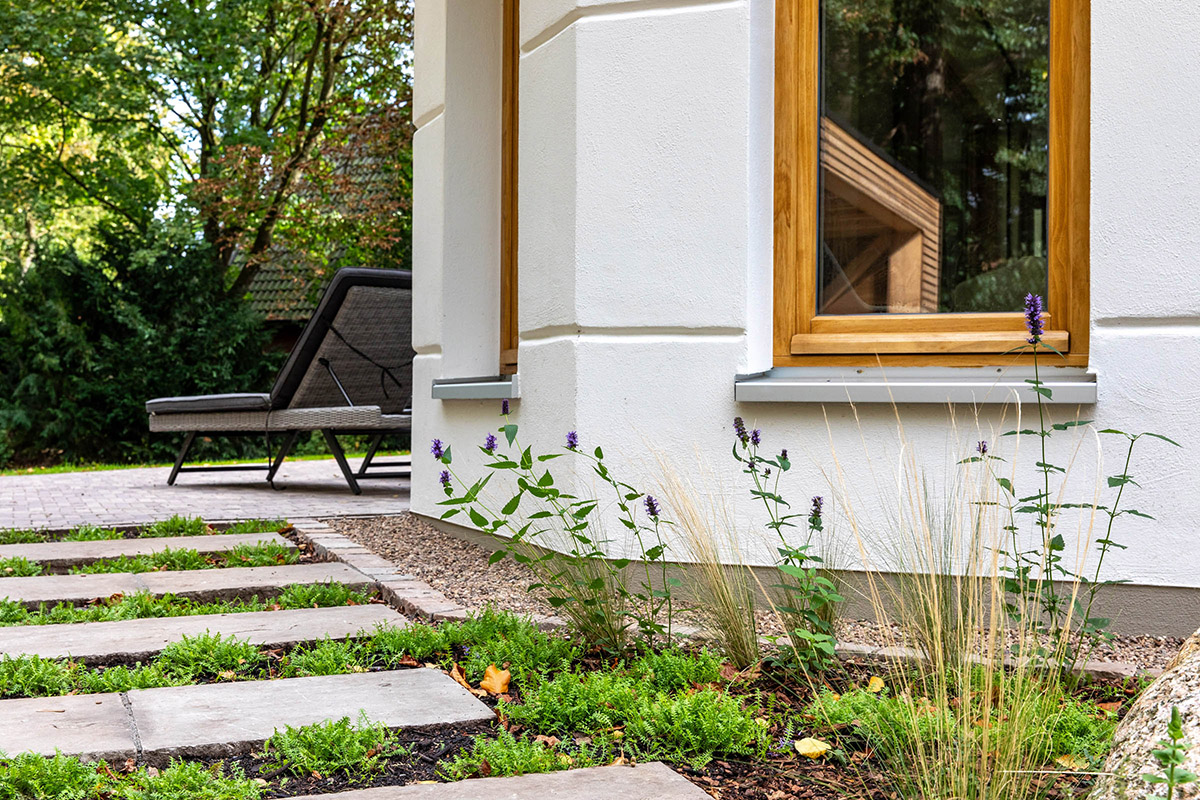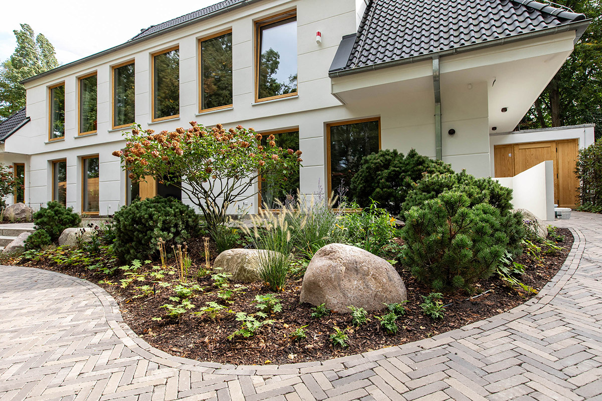 - Einbettung des aufwendig umgebauten und neu interpretierten Hauses in die Bepflanzung