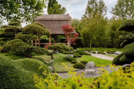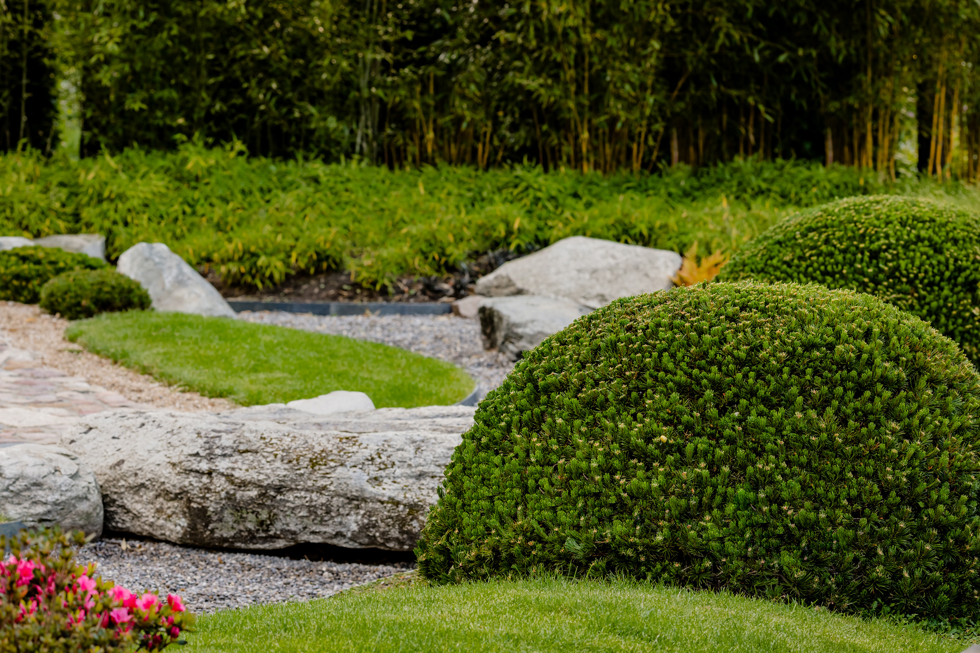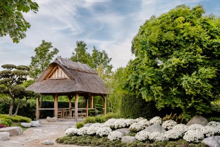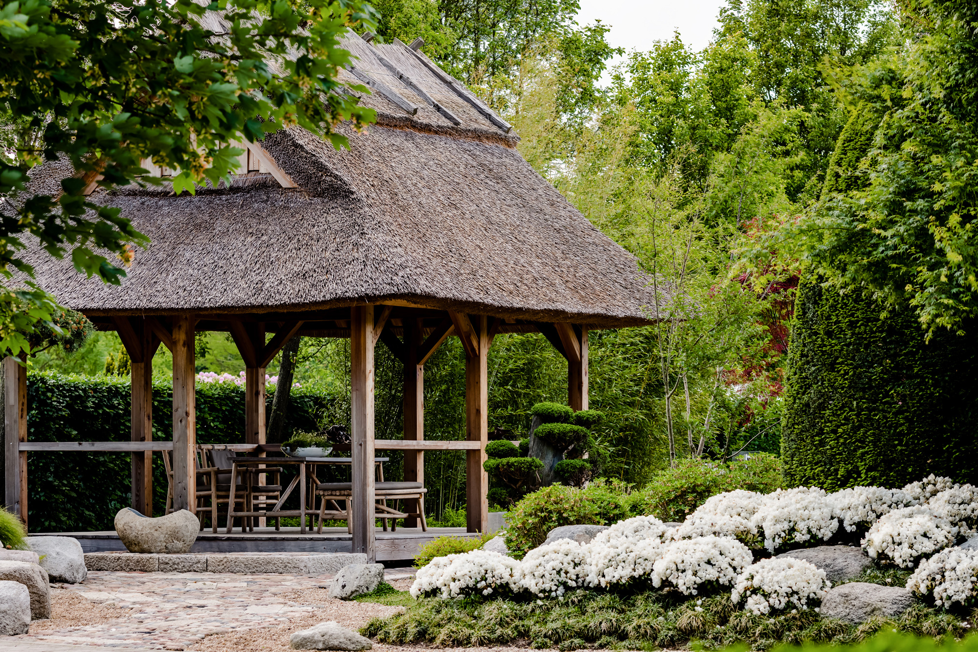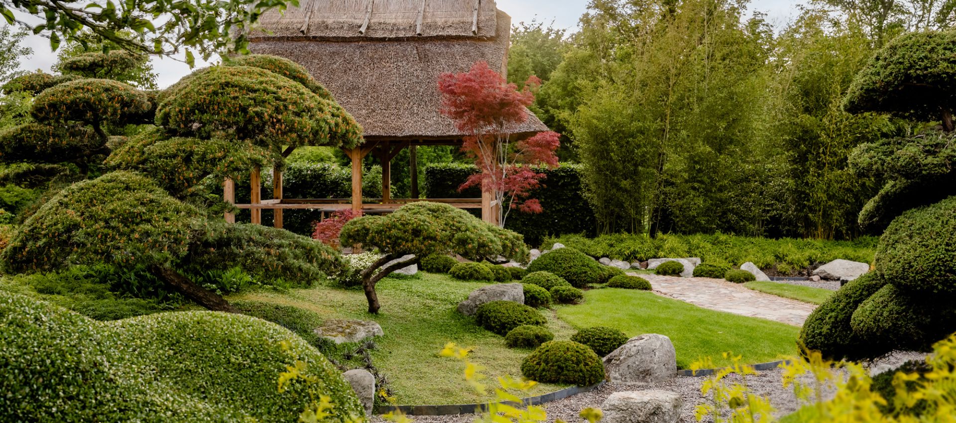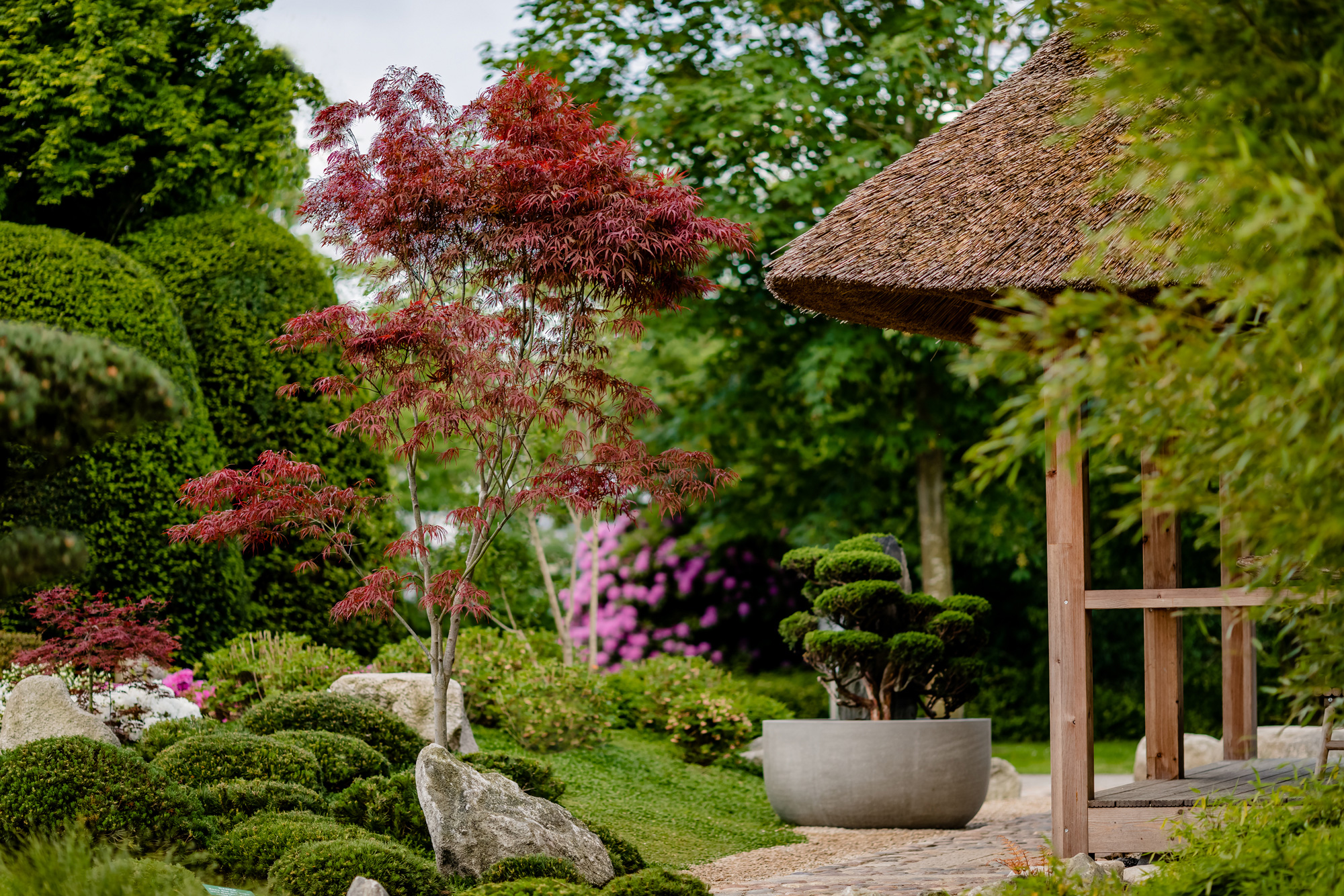 Der ursprüngliche Japan-Garten im Park der Gärten wurde im Jahr 2000 von Herrn Hans Jürgen Höpken (ehemals Baumschule Höpken in Bad Zwischenahn) geplant und angelegt. Gut zwanzig Jahre später sollte eine Umgestaltung und Erweiterung des Gartens stattfinden. In gemeinsamer Absprache mit Herrn Höpken und dem Park durfte ich mich an die Planung machen und anschließend die Umsetzung der Planung realisieren. Abgesehen von der Erweiterung des Gartens fand hier die Umkehrung eines reinen Betrachtungsgarten in einen Wandelgarten statt. Die Besucher des Parks können nun in den Garten gehen, ihn aus unterschiedlichen Perspektiven und Blickwinkeln betrachten und ihn sogar aus dem reetgedeckten Pavillon heraus genießen.