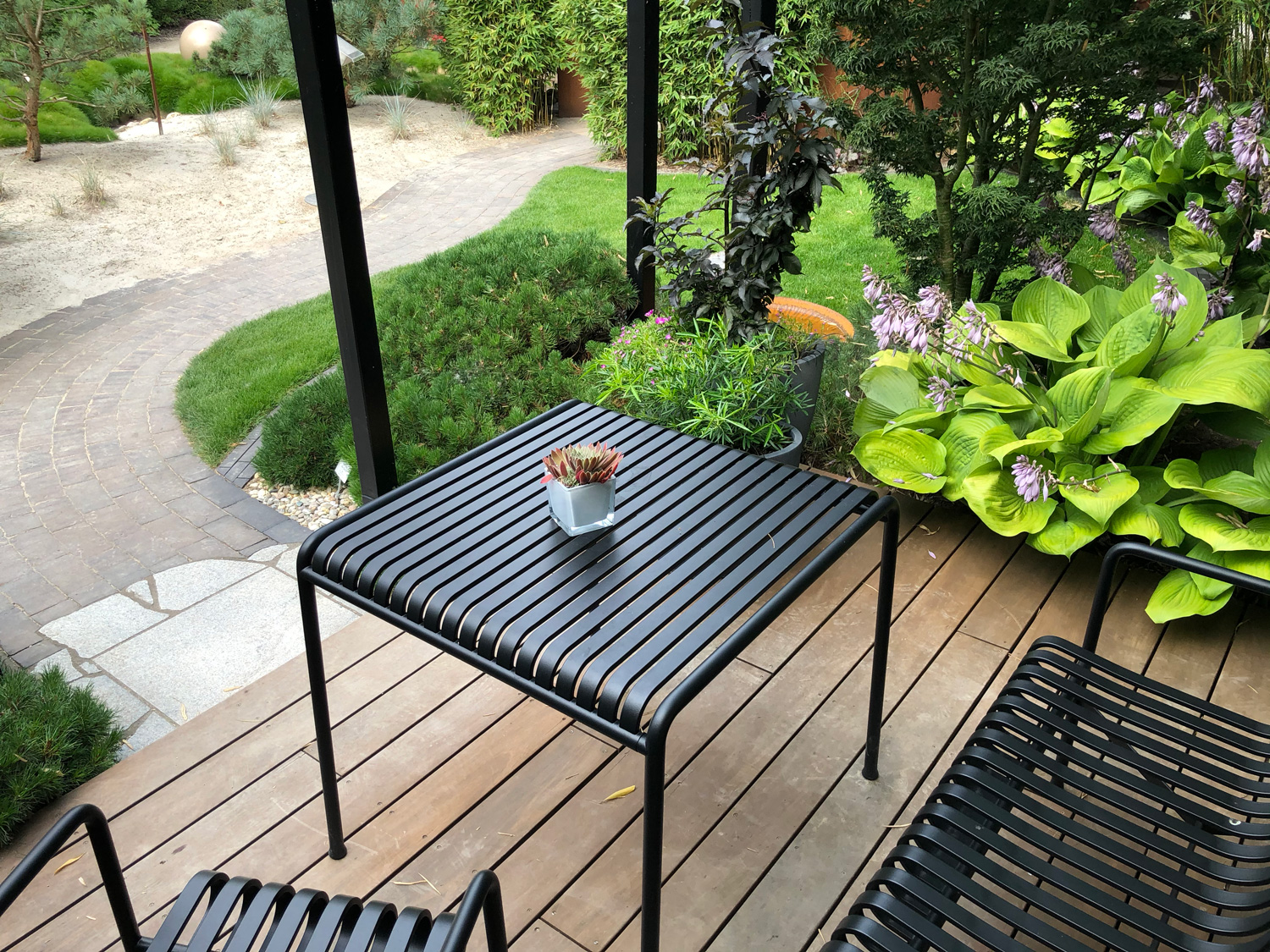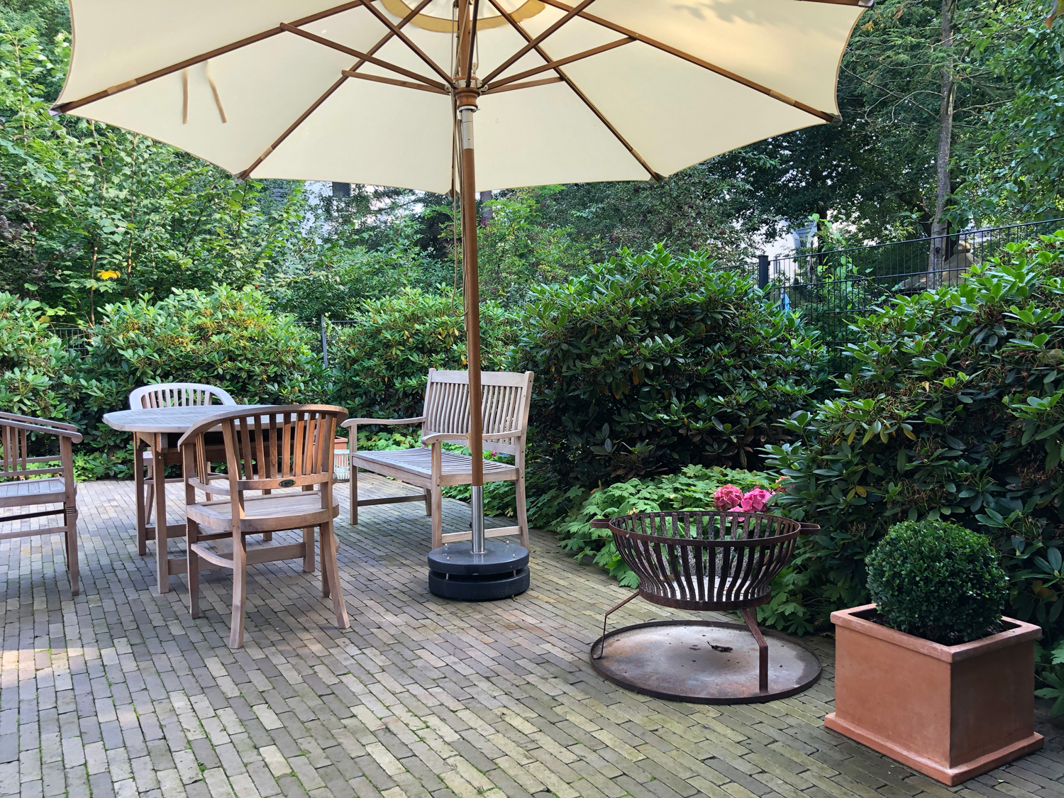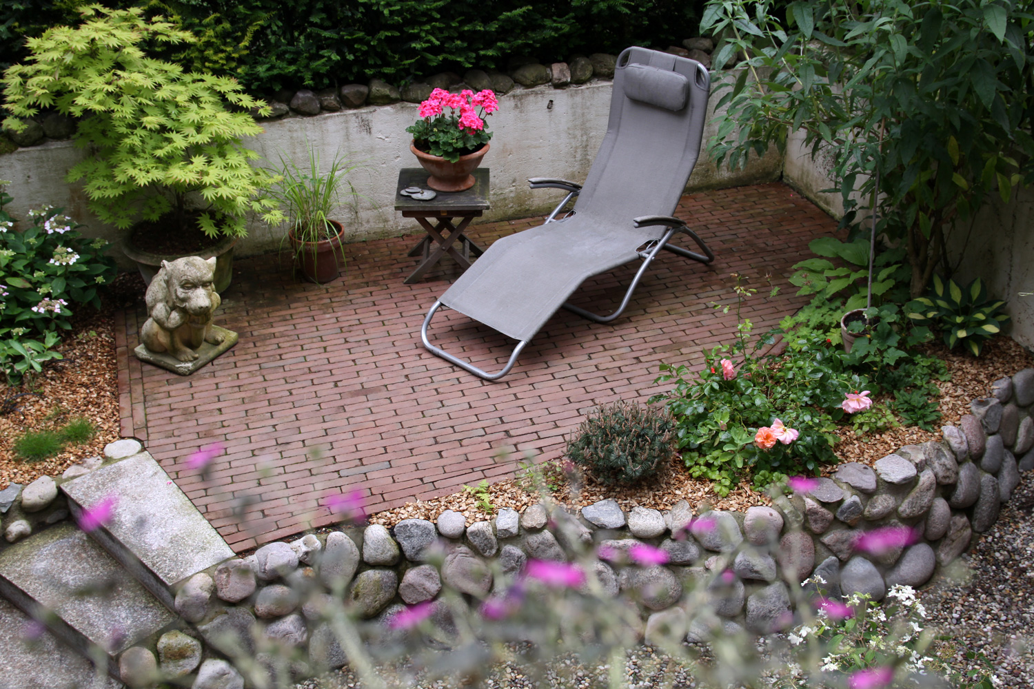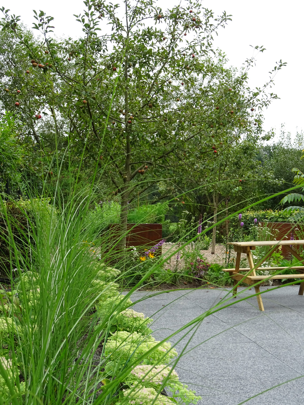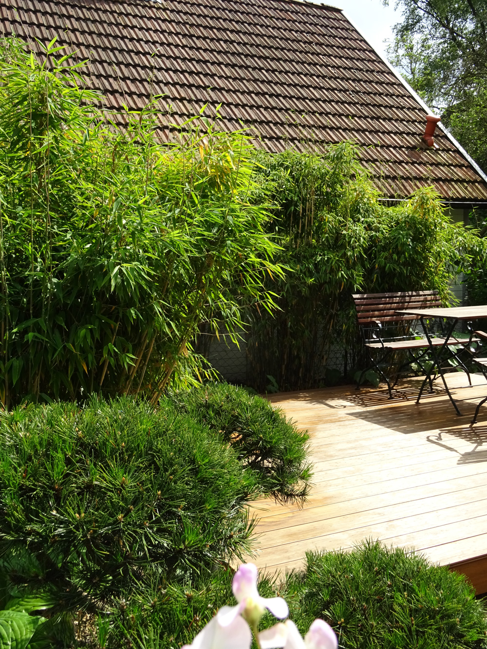 Um den eigenen Garten richtig genießen zu können, brauchen wir Terrassen und, wenn es der Raum her gibt, gerne auch weitere Sitzplätze. Die einen möchten im Tagesverlauf mit der Sonne gehen, die anderen suchen eher bewusst schattige Bereiche im Garten. Bei der Auswahl der Materialien spielen, neben persönlichen Vorlieben, auch das Zusammenspiel mit der Architektur und anderen vorhandenen Materialien eine Rolle. Außerdem sollte darüber nachgedacht werden, wieviel Fläche wir im Garten versiegeln und ob wir alternativ für den zweiten, dritten Sitzplatz nicht auch wassergebundene Wegedecken, Kies oder Mulch einsetzen können.